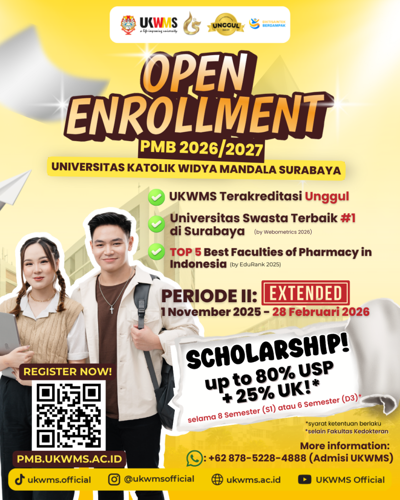 Dapatkan informasi berbagai kegiatan ketika bergabung di Universitas Katolik Widya Mandala Surabaya, karena belajar tidak hanya di dalam kelas melainkan juga beragam kegiatan yang mengasah kemampuan baik dari soft skill dan hard skill.