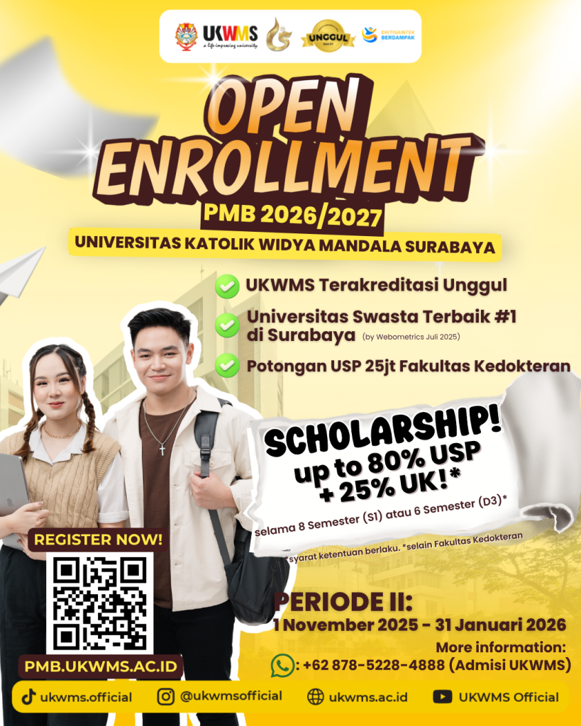 Dapatkan informasi berbagai kegiatan ketika bergabung di Universitas Katolik Widya Mandala Surabaya, karena belajar tidak hanya di dalam kelas melainkan juga beragam kegiatan yang mengasah kemampuan baik dari soft skill dan hard skill.