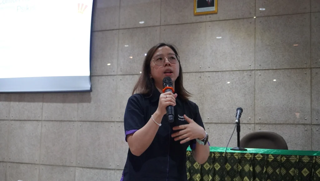 Terakhir, Erlyn Erawan, M.Ed., dari SatGas PPKPT UKWMS, menyampaikan materi Pencegahan dan Penanganan Kekerasan. Materi ini menekankan pentingnya membangun lingkungan kampus yang aman bagi semua. “Pelecehan sekecil apa pun tidak boleh dianggap wajar. Korban maupun saksi perlu berani mencari bantuan. Baik kepada dosen, pihak kampus, maupun Satgas PPKPT. Serta melakukan intervensi bystander, agar lingkungan belajar benar-benar aman bagi semua,” pesan Erlyn.